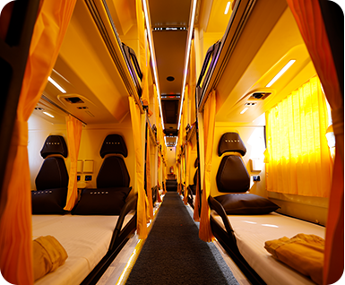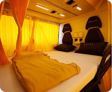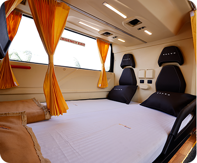 Now, once a passenger boards the bus he will be surprised by the inner comfort of the bus. The buses have all the latest amenities like WiFi, charging point, water bottle and central TV. The seats are really very comfortable and create a feeling of a cosy bedroom. We have almost all the luxury brand buses in our fleet. Our luxurious fleet includes Mercedes Benz Multi-axle buses, Volvo Multi-axle buses, and Scania Multi-axle comfort buses. These buses help in smoothening the journey. Our motto to change the perception of bus travel makes us enhance our luxury levels regularly.